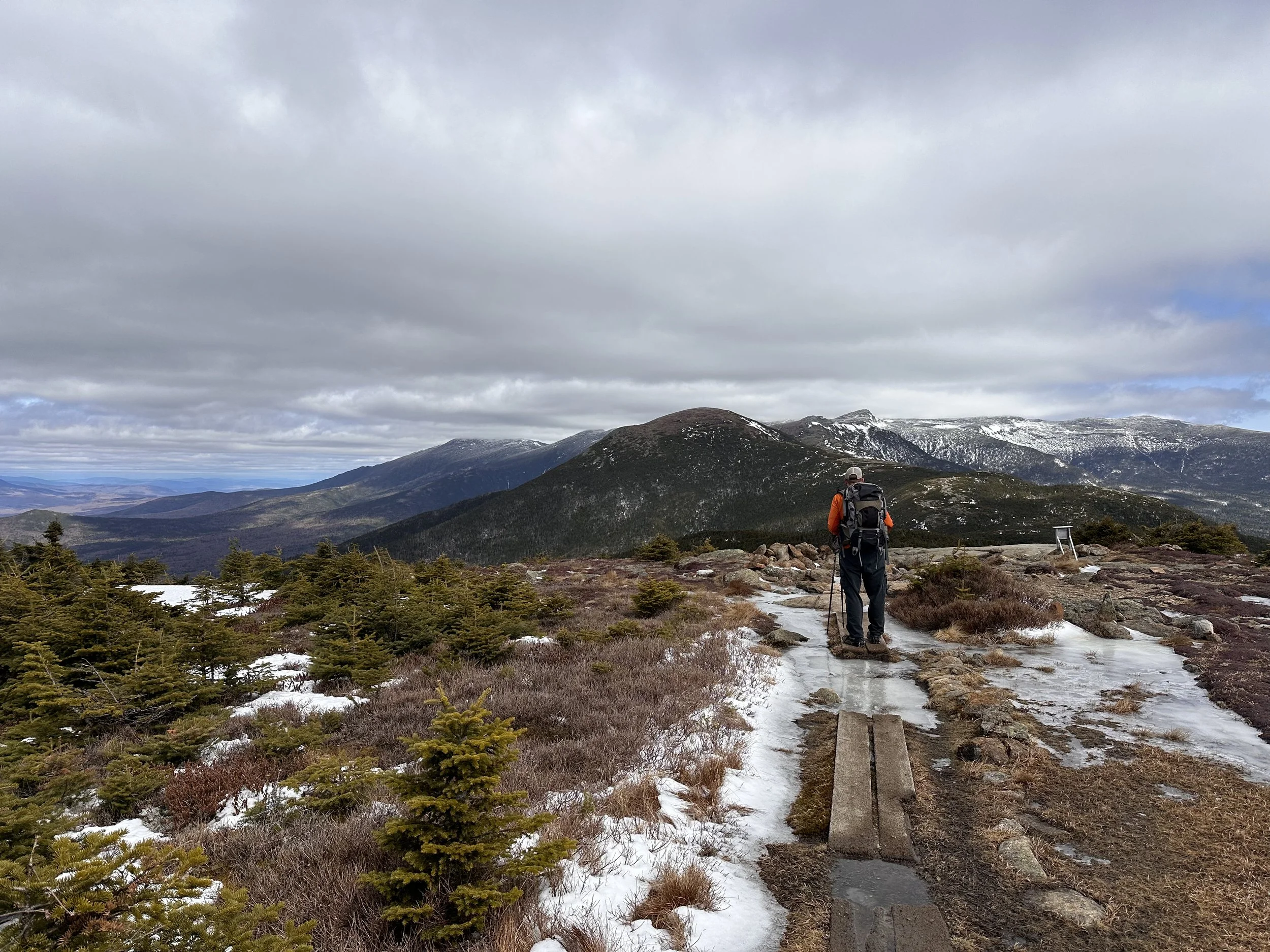 And then... in classic White Mountain fashion, the weather pulled a fast one. We felt a breeze entering the Alpine Zone, but by the time we reached the true summit just a few hundred feet later, the wind had cranked up and the cold rolled in like it had an appointment. So, instead of a scenic summit lunch, we hightailed it back to the tree line and picnicked there. Slightly less epic—but significantly warmer.