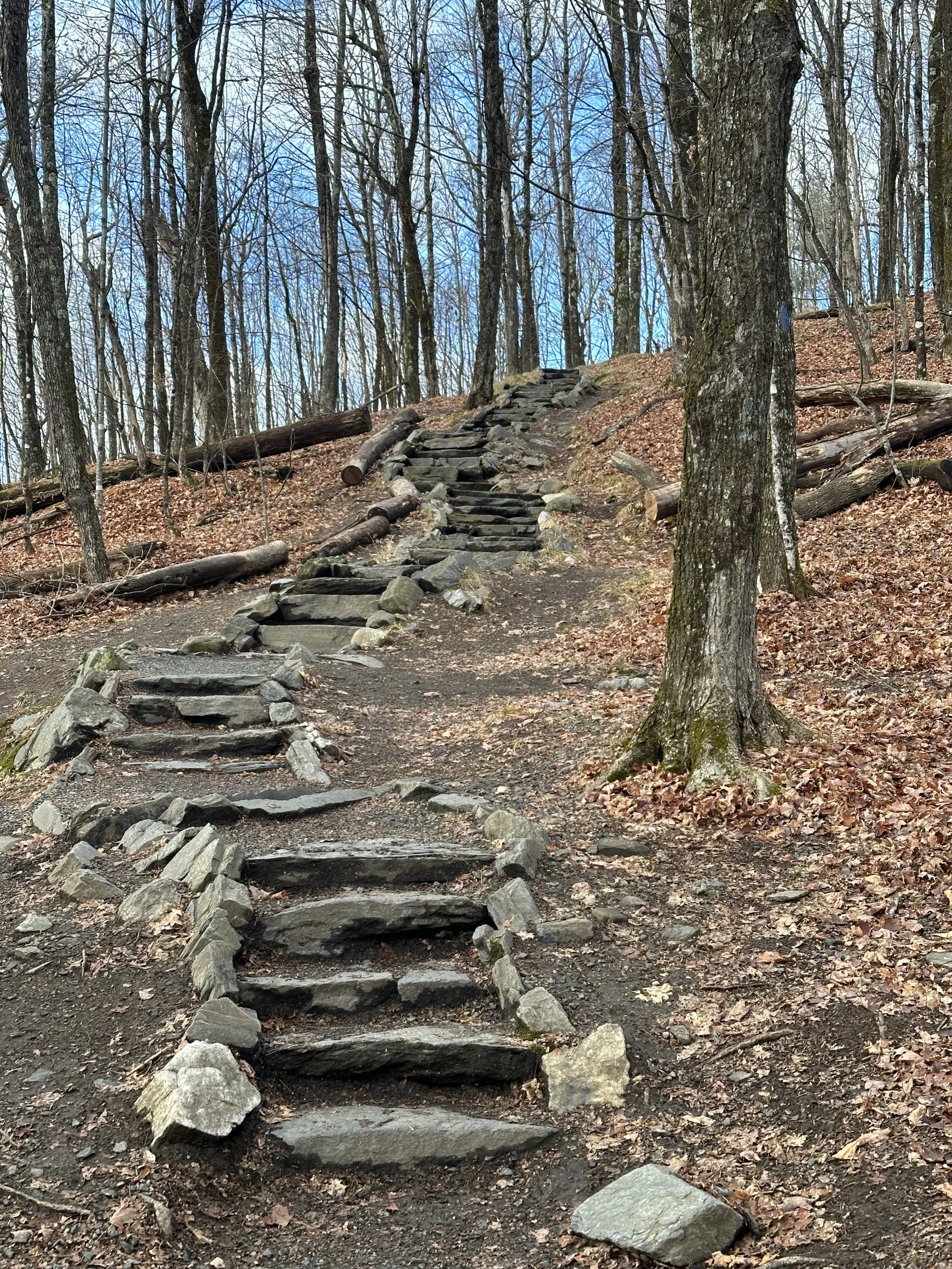 A fairly short hike with lots of stairs and a cool fire tower at the summit. On a clear day, you can even spot the ski trails of Killington Mountain.